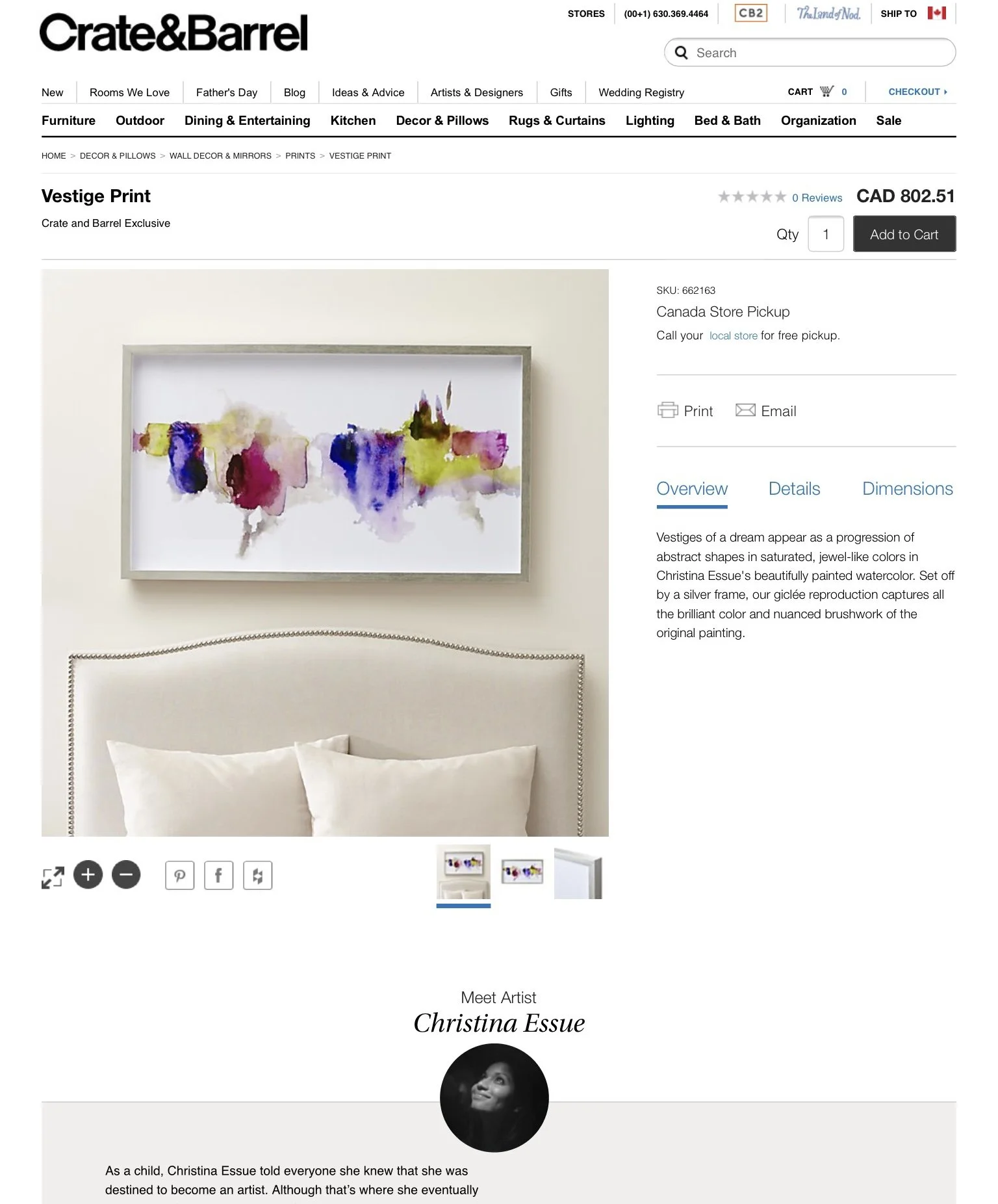 As an artist she has created pieces for homes, hotels, hospitals and clothing for clients worldwide including Target, Crate & Barrel, Aloft Hotels, Wayfair, Walmart, Cover Swim and more. She’s been featured on the MOMA SF blog and has been represented by PI Fine Art and Partial Gallery since 2015.